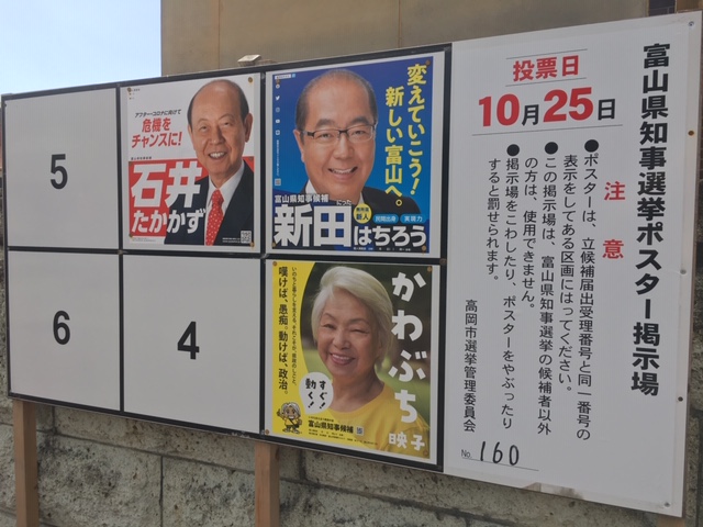 10月25日の富山県知事選挙の投票日でしたね。私は今回初めて期日前投票に行ってきました。投票率は60.67%で60%を超えたのは、1996年以来だったそうです。