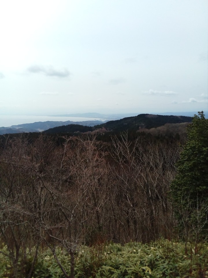 碁石が峰からは稜線沿いに進みます。落ち葉の絨毯が敷かれたフカフカの道、木々が開けた場所に出ると左手に能登の平野、右手には富山湾が見渡せます。アップダウンで辛い時もありましたが、それ以上に癒されます。